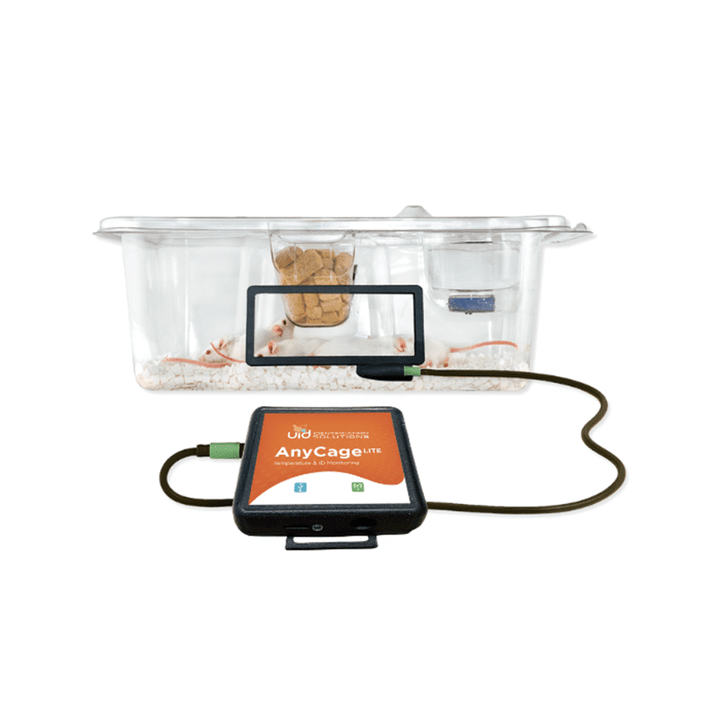 AnyCage Lite is a non-invasive monitoring solution engineered for continuous, real-time data collection while maintaining animals in their home cages without disruption. The system enables seamless acquisition of animal ID and temperature data without the need for handling or intervention.