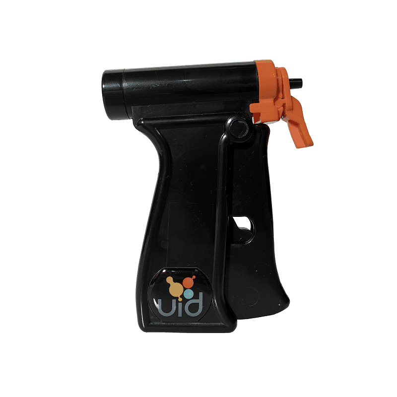 The UPGI-Q Microchip Pistol Grip Injector has a revolutionary ejector system for quick and easy removal of the needle assembly after injection. Simply squeeze the handle to inject the microchip and pull the ejector tab for safe disposal of used needles in a sharps container. This injector features an ergonomic design, which is ideal for preventing fatigue during multiple microchip implantations. It is compatible with all UID Implantable Transponders (UCT-2112, UC-1485, UC-2112), except the UC-1283 MiniMax Microchips.